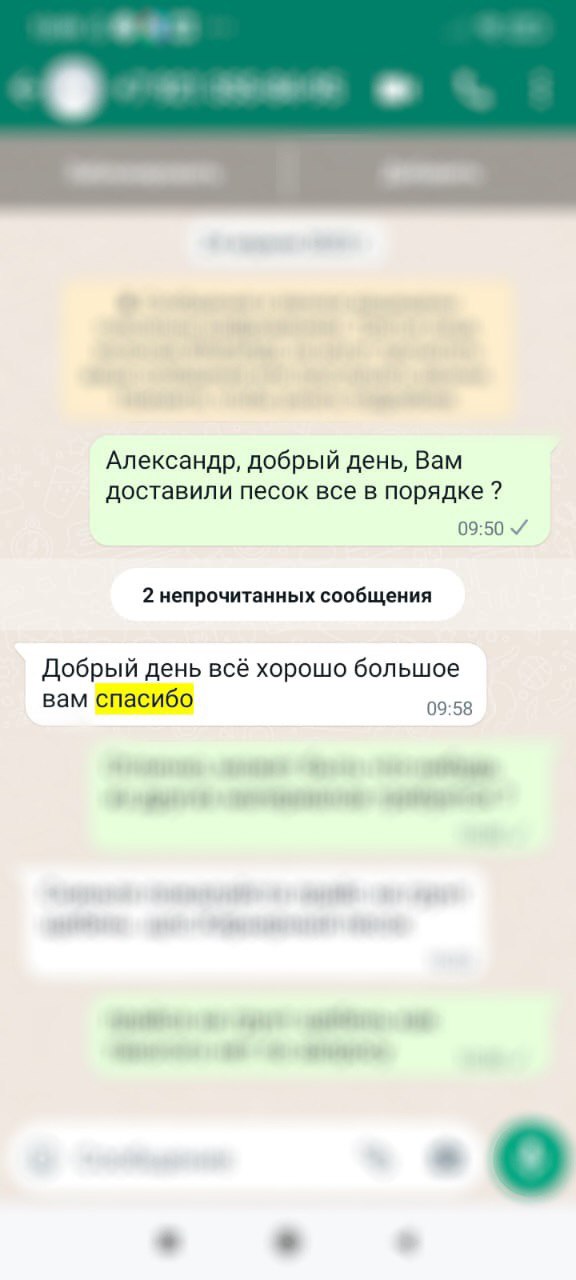 На прошлой неделе заказали у компании Велесарк 20 кубов речного песка для отделочных работ Заказ уже выполнен. Сроки соблюдены. Примите благодарность за оперативность.